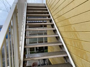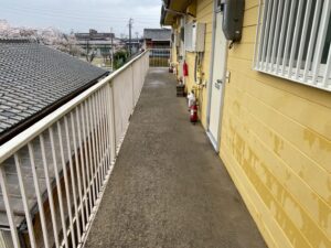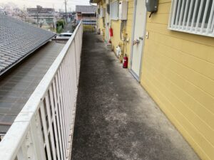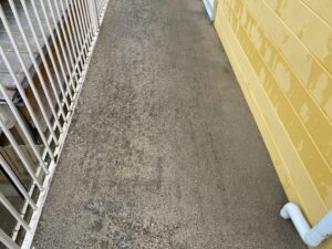 本日はアパート共用部の土間にて高圧洗浄作業を行いました。