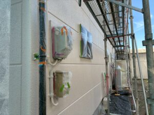 今回は、外壁塗装工事の仕上げ工程となる、中塗りから上塗りまでの作業を行いました。
