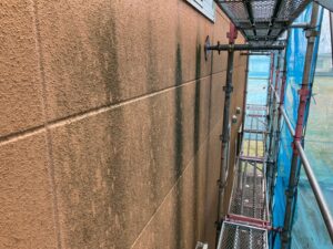 洗浄後は、チョーキングやひび割れの状態がはっきり見えるため、補修の見極めにも重要なタイミングです。