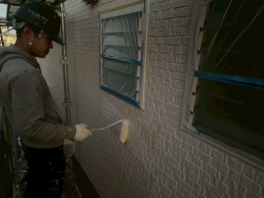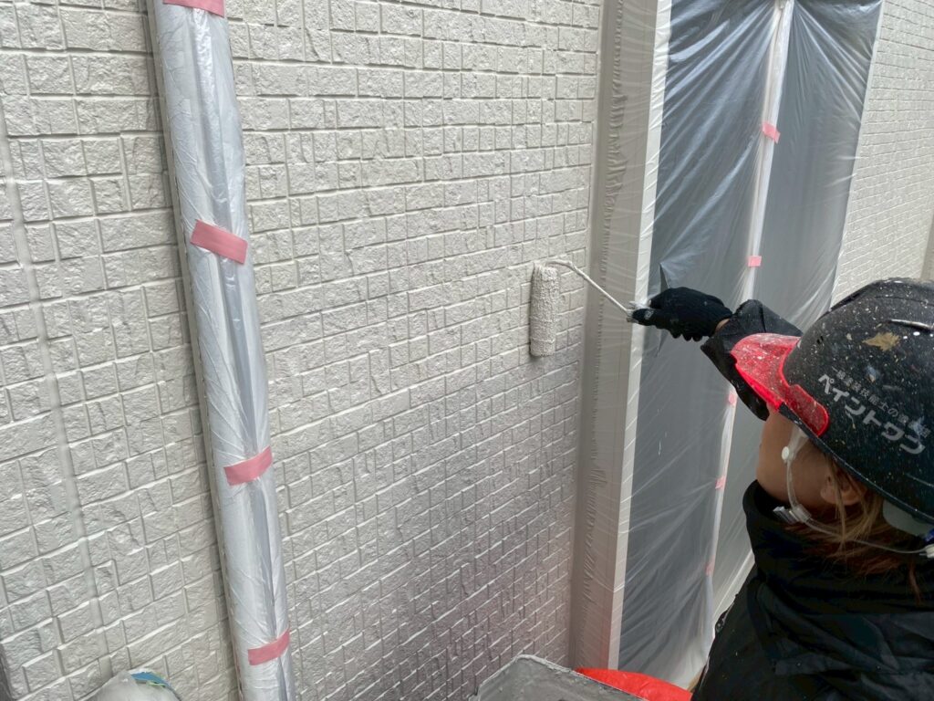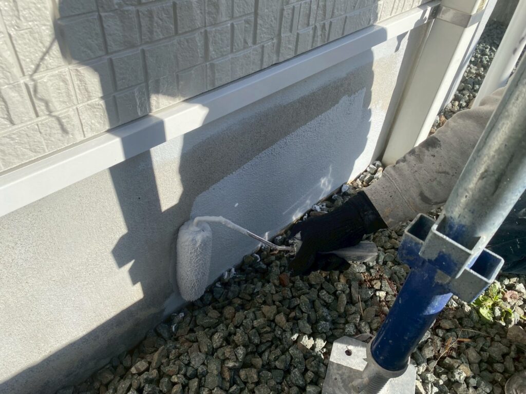まずは上塗りとの密着性をあげるために透明の下塗り材を塗装します。