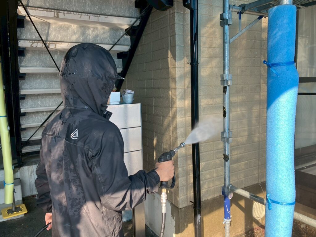 まずは高圧洗浄にてしっかりと洗い流します。