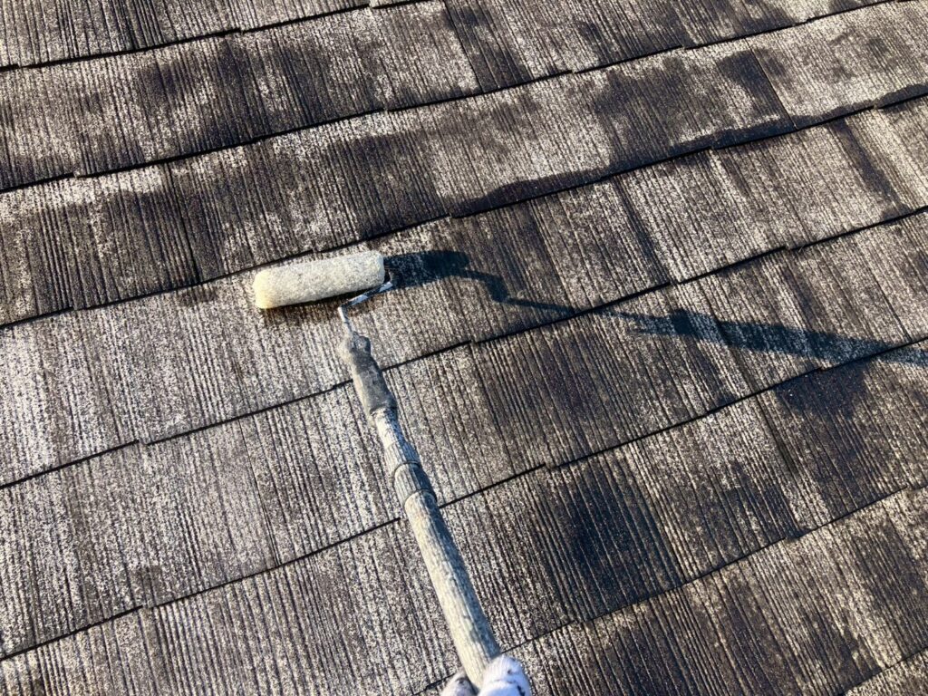 屋根の下塗りは上塗りと屋根材の密着性を上げる工程となります。
