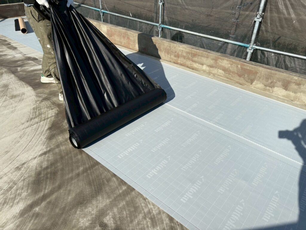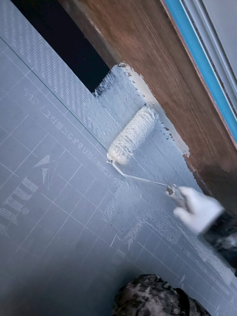 プライマーにて固めていき、通気シートまたはウレタン防水材の