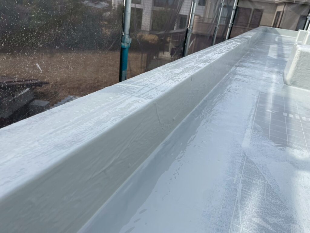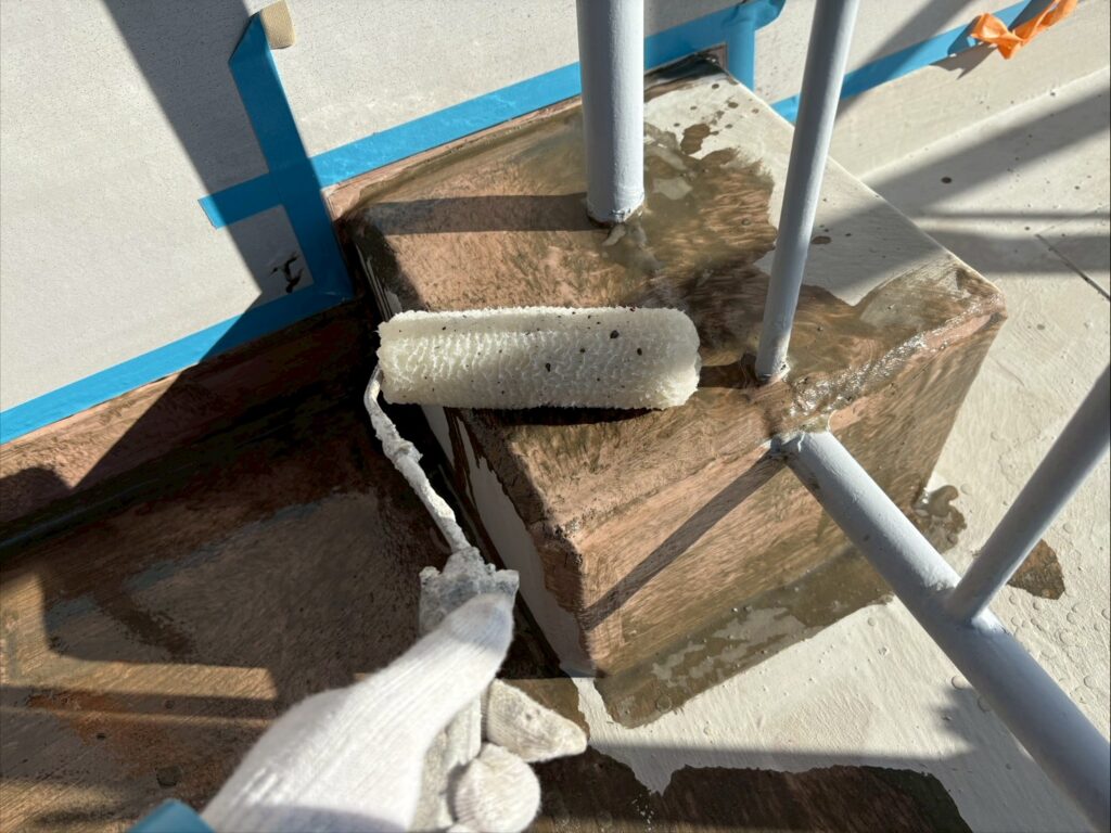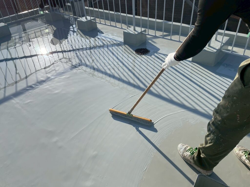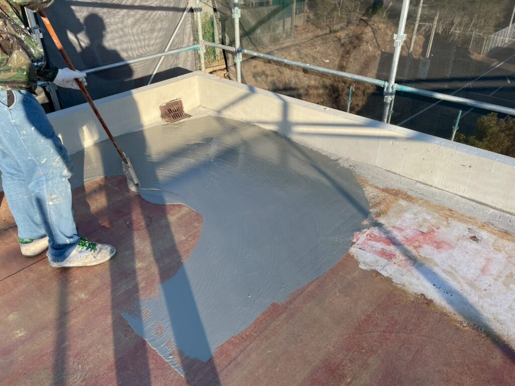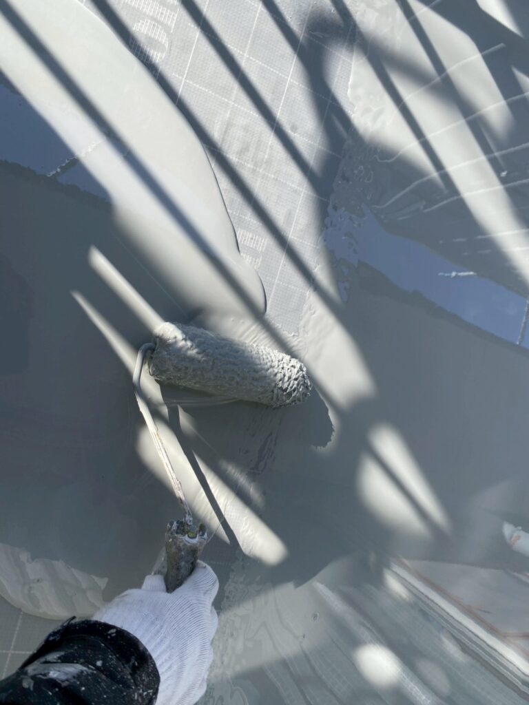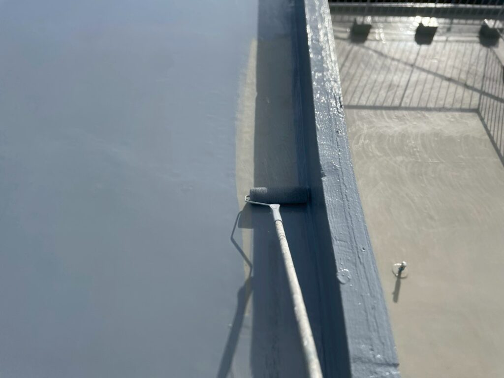 ウレタン防水材は紫外線に弱く、汚れやすくもあるので、トップコートにて保護していきます。
