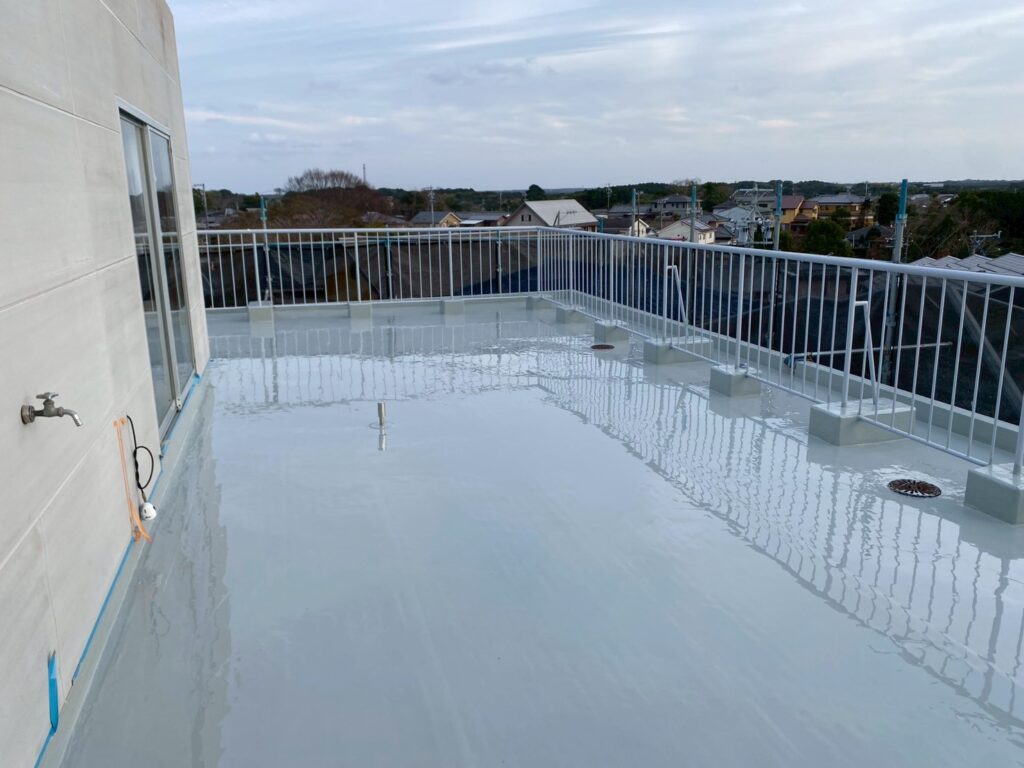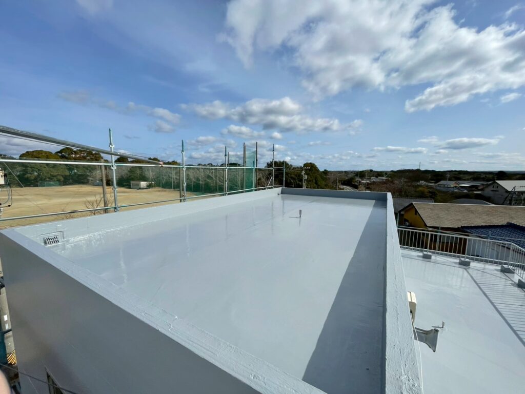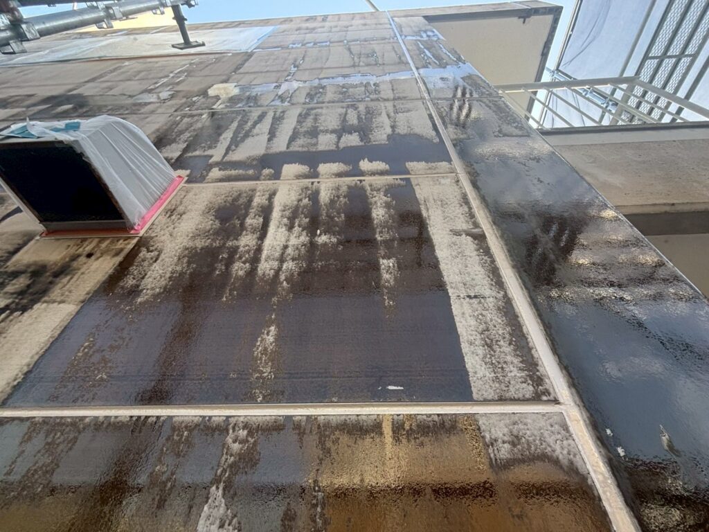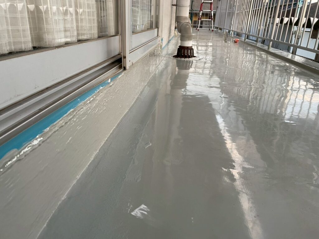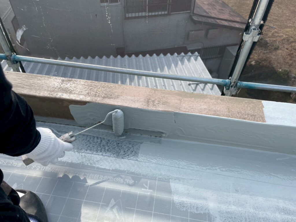 ウレタン防水材は紫外線に弱く、汚れやすくもあるので、トップコートにて保護していきます。