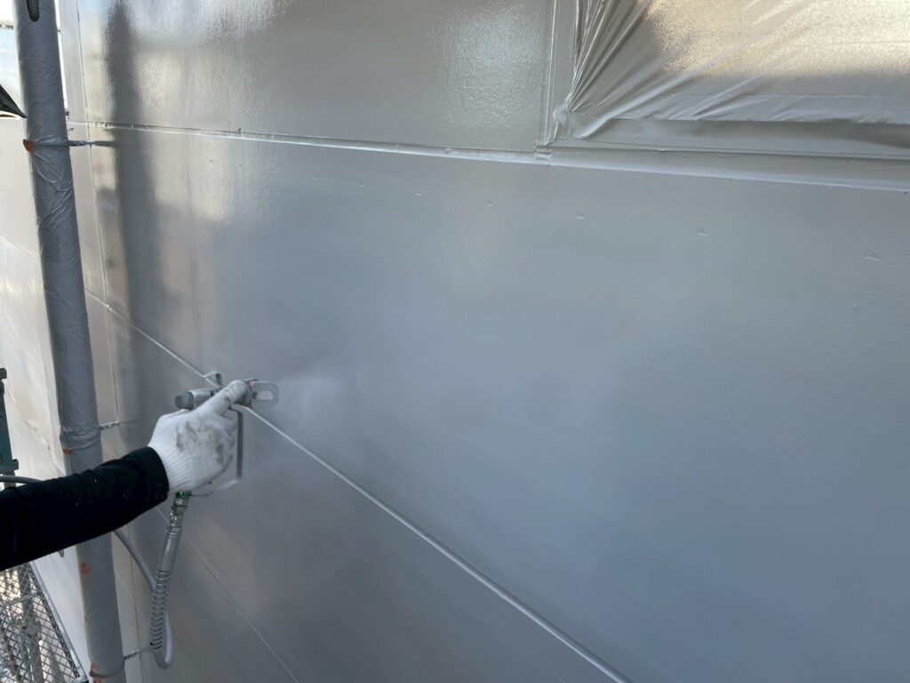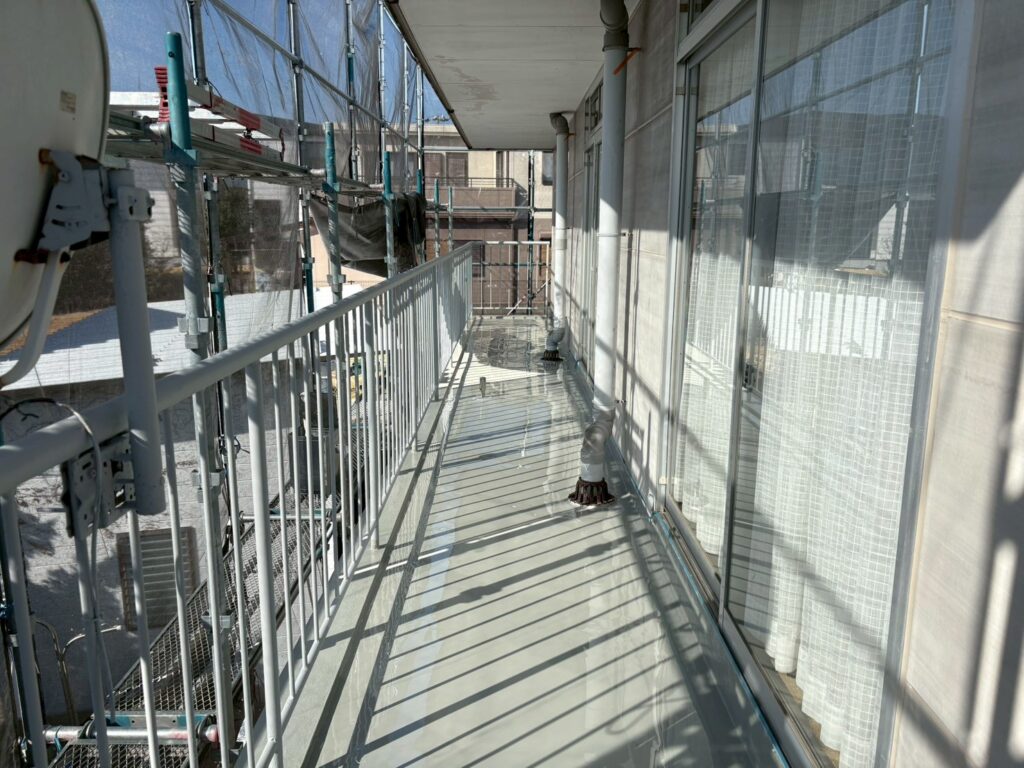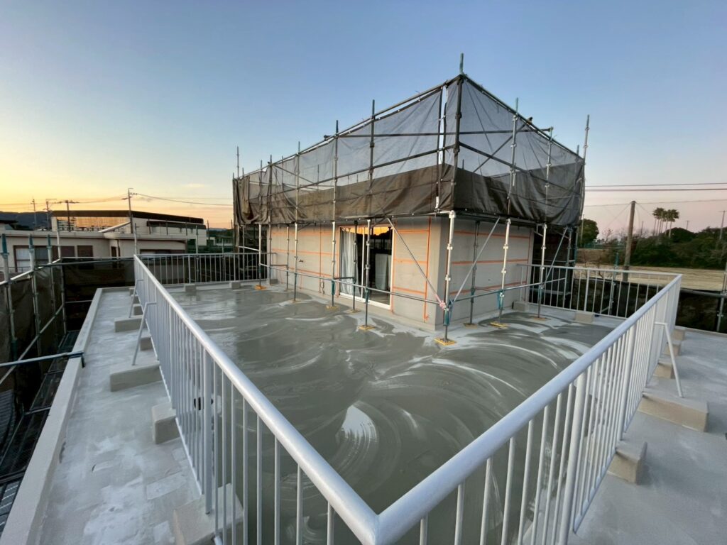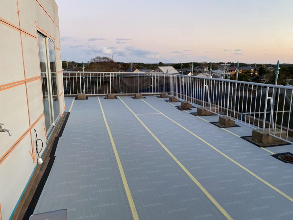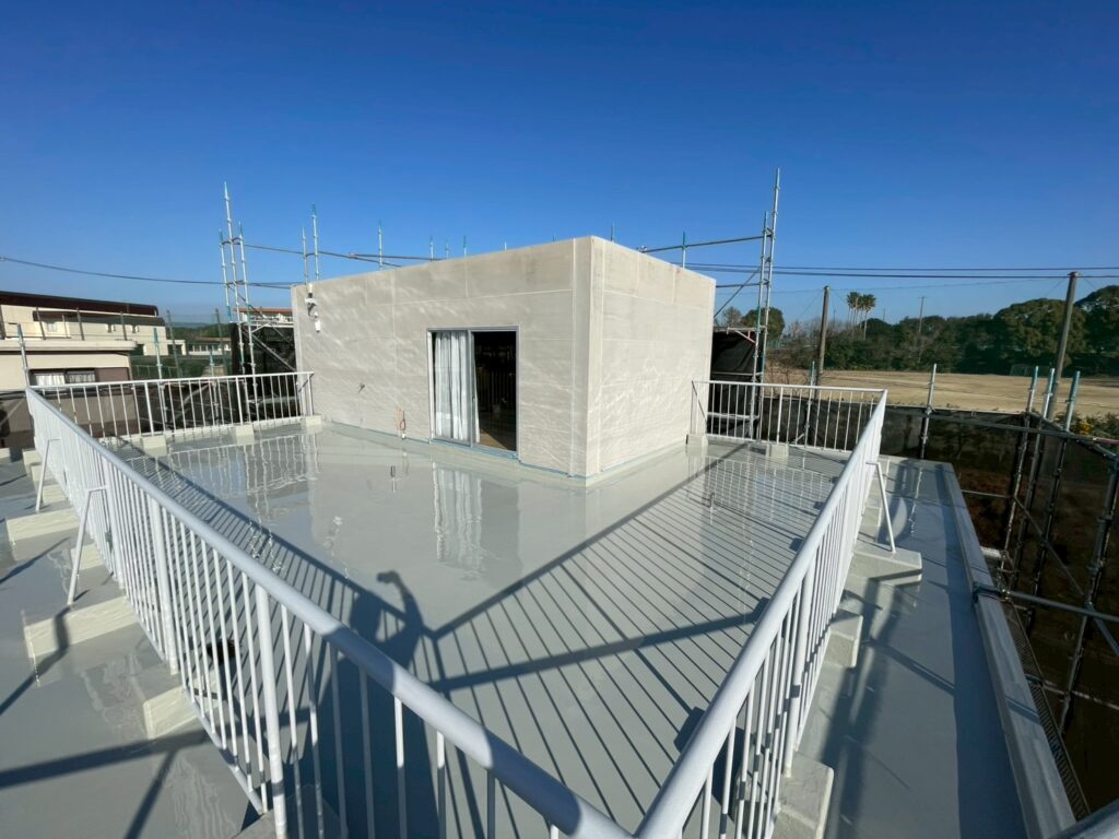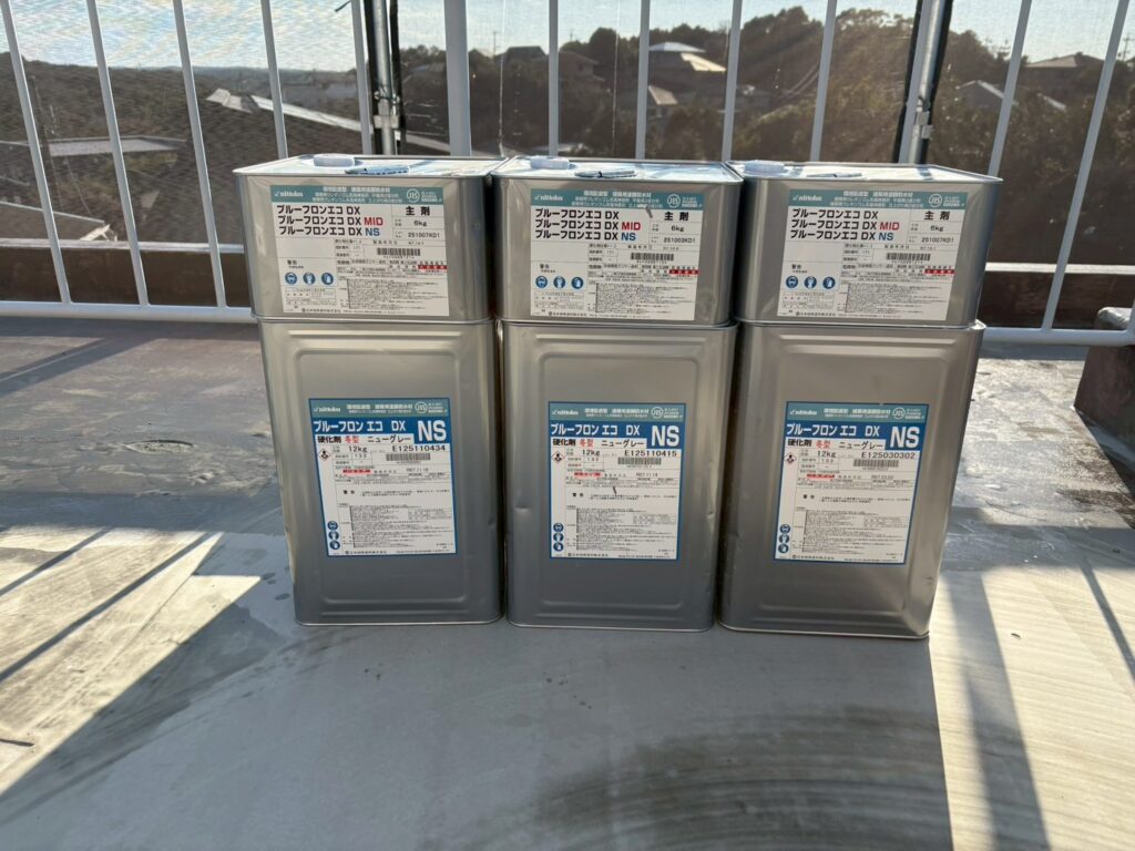 ウレタン防水材は紫外線に弱く、汚れやすくもあるので、トップコートにて保護していきます。
