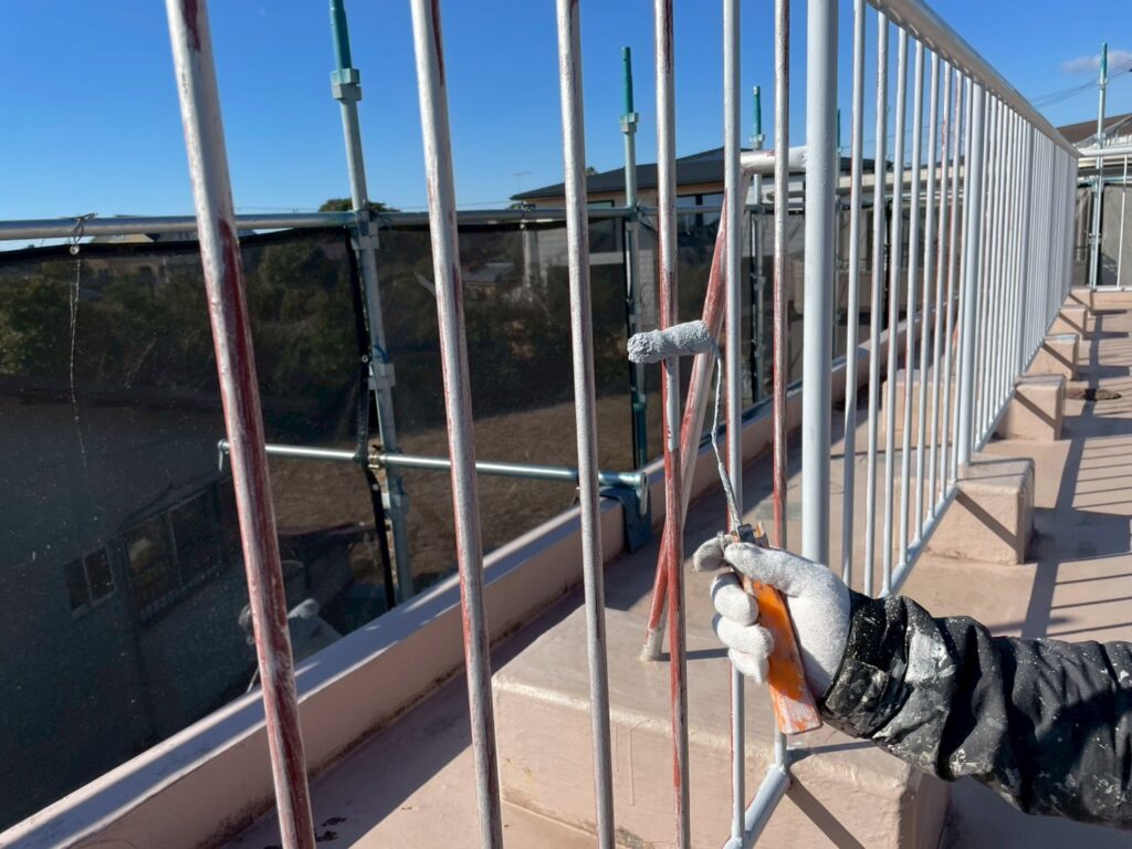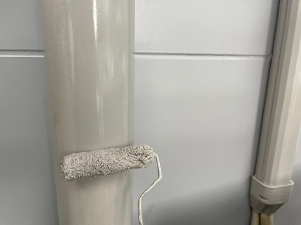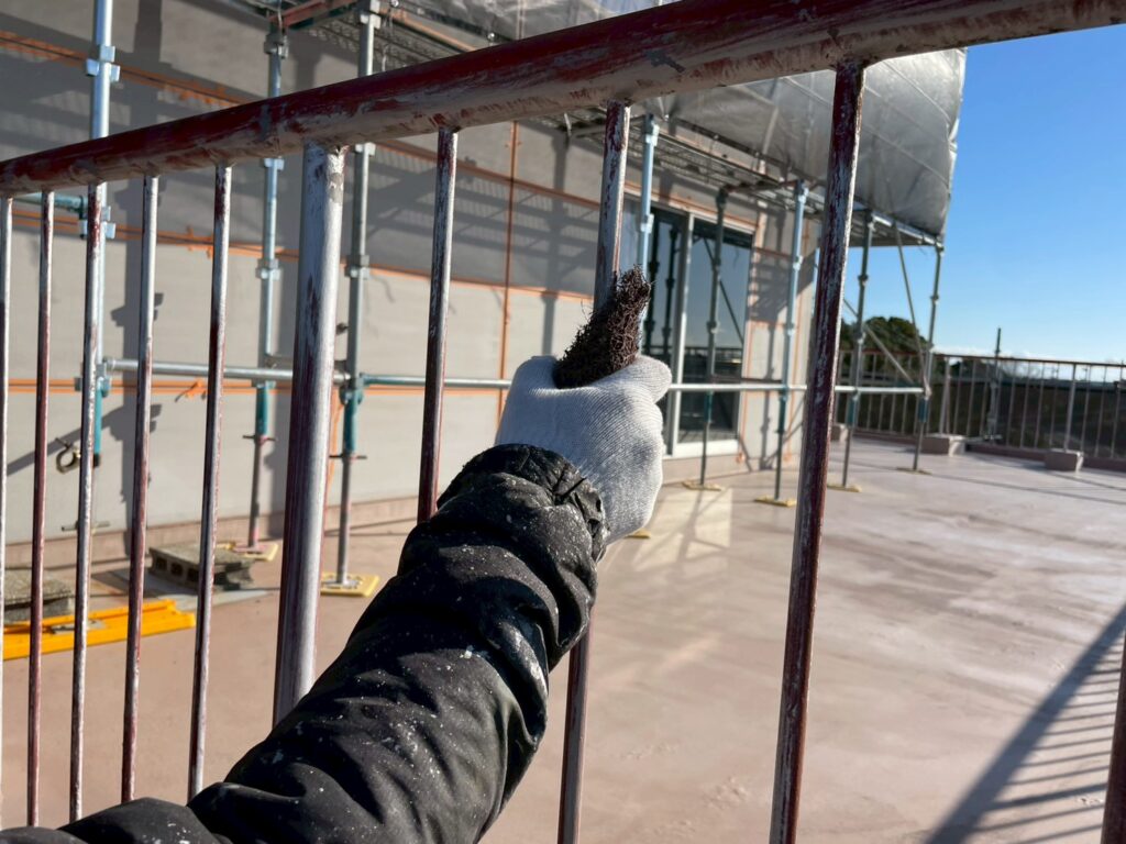 金属部分は錆の抑制と下塗りの役割を果たす錆止め塗料を塗っていきます。