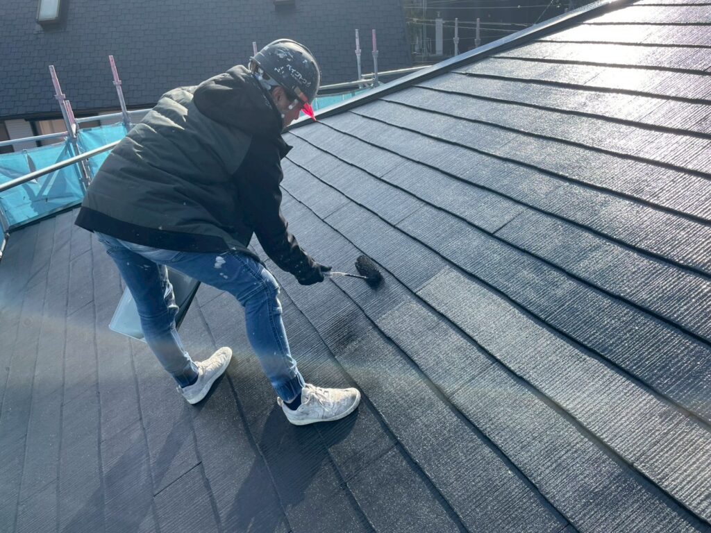 屋根の下塗りは上塗りと屋根材の密着性を上げる工程となります。
