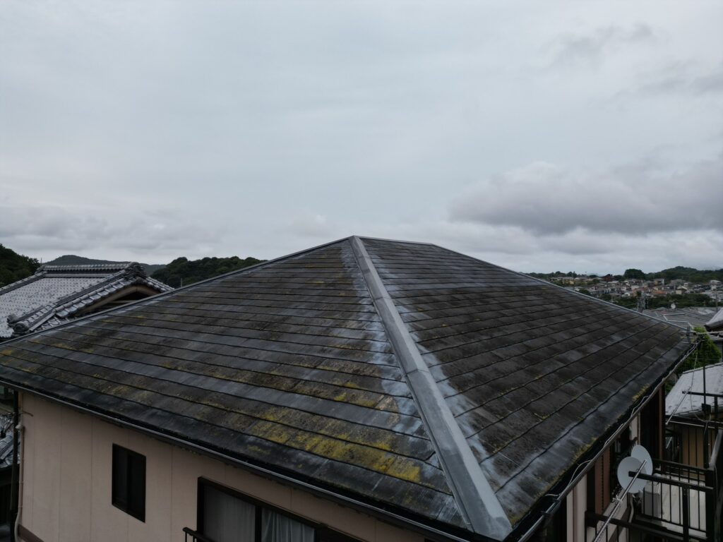 屋根を塗装する前のに、カラーベストに付着した汚れを綺麗に洗い流していきます。