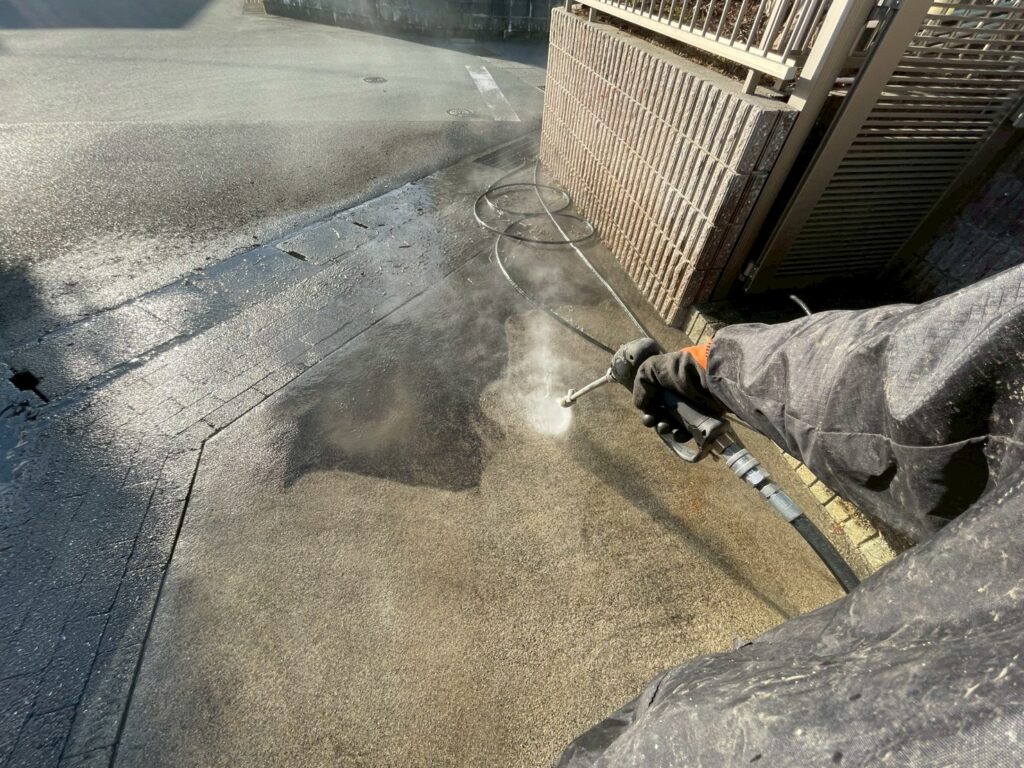 まずは高圧洗浄にてしっかりと洗い流します。