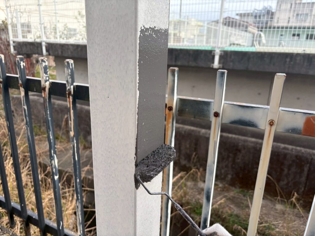 金属部分は錆の抑制と下塗りの役割を果たす錆止め塗料を塗っていきます。