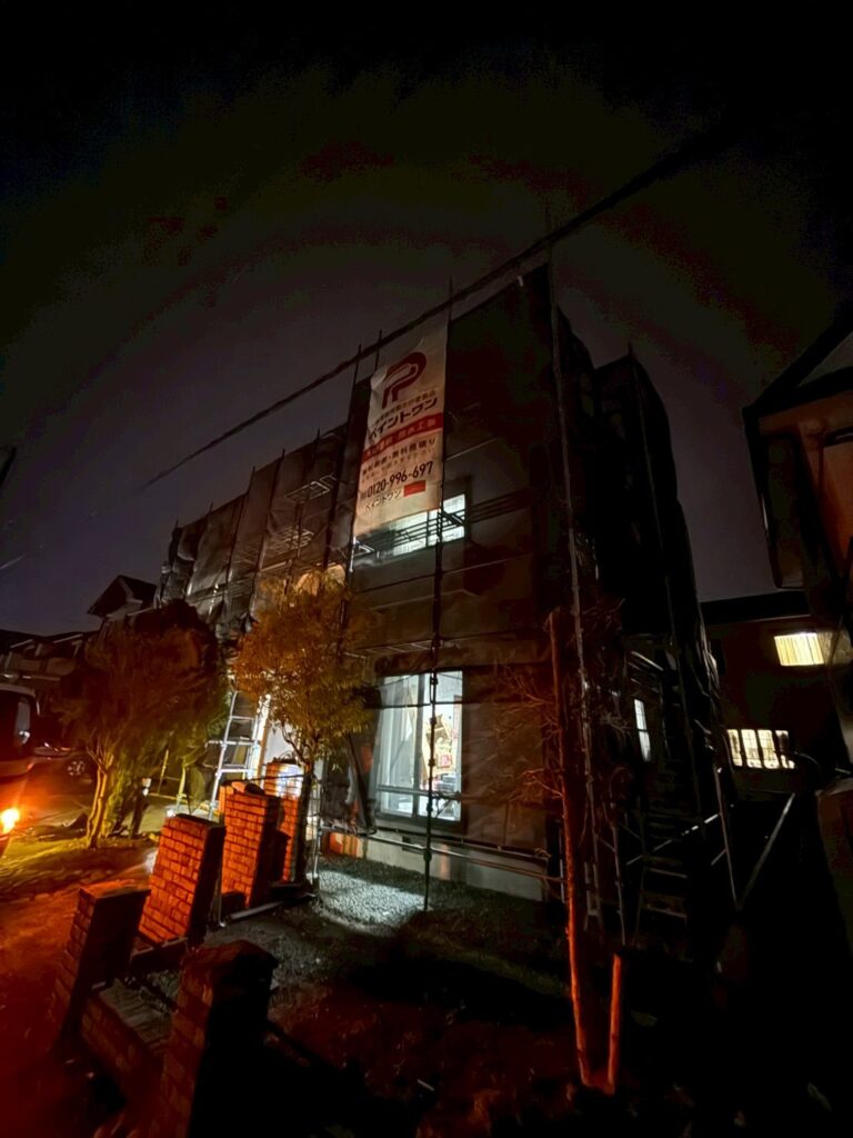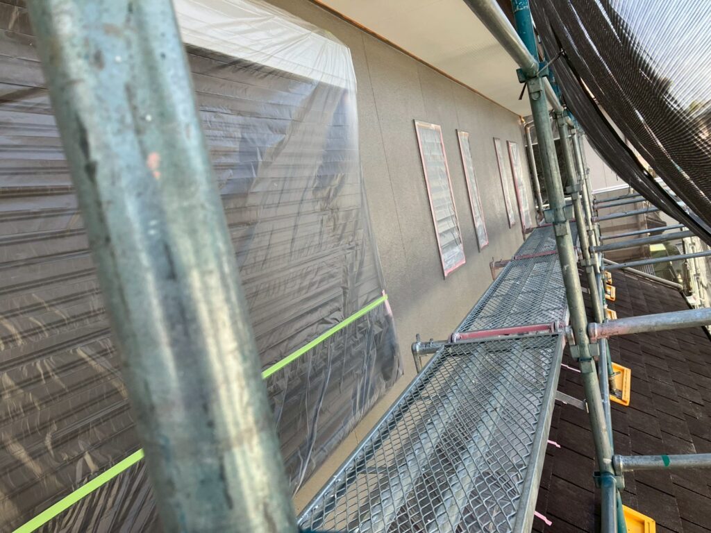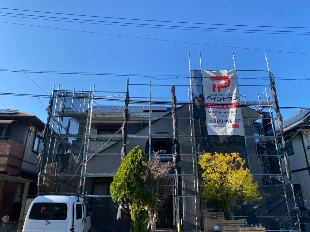 安全で高品質な施工を行うため、建物全体に足場を設置しました。