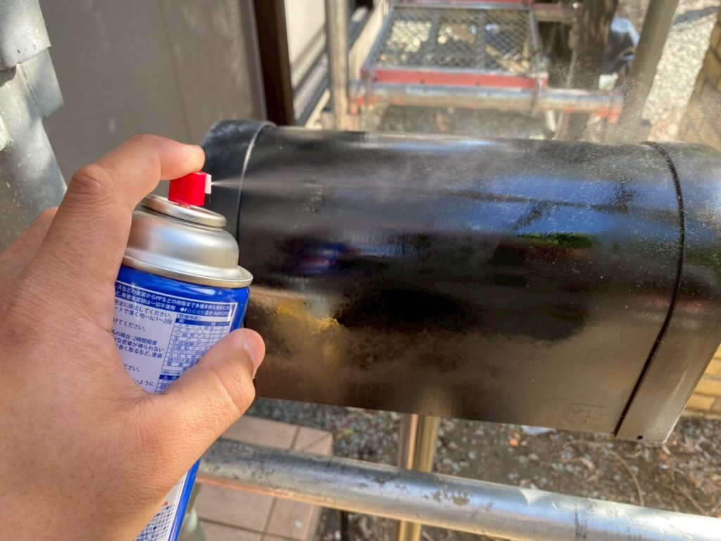 金属部分は錆の抑制と下塗りの役割を果たす錆止め塗料を塗っていきます。