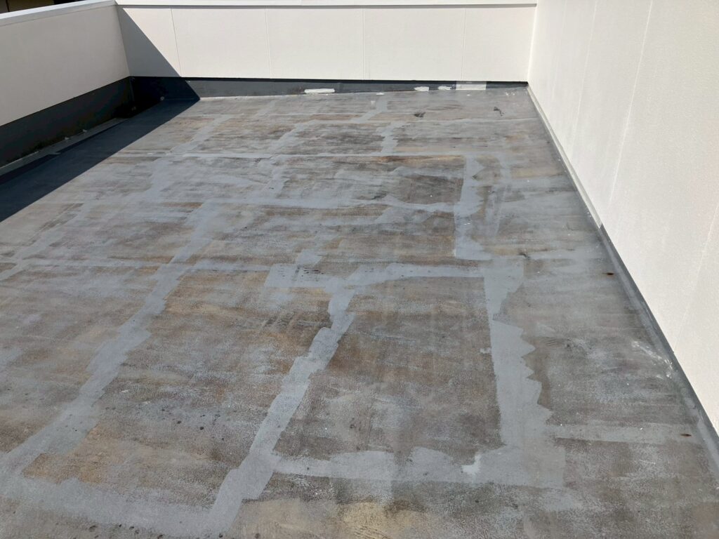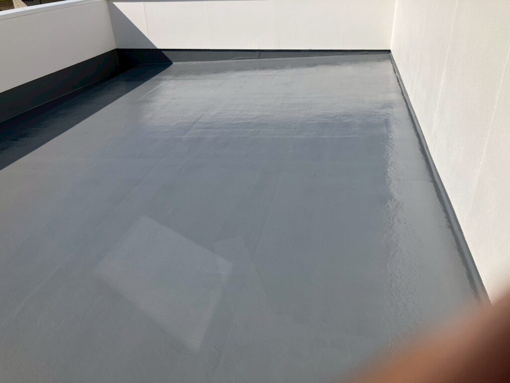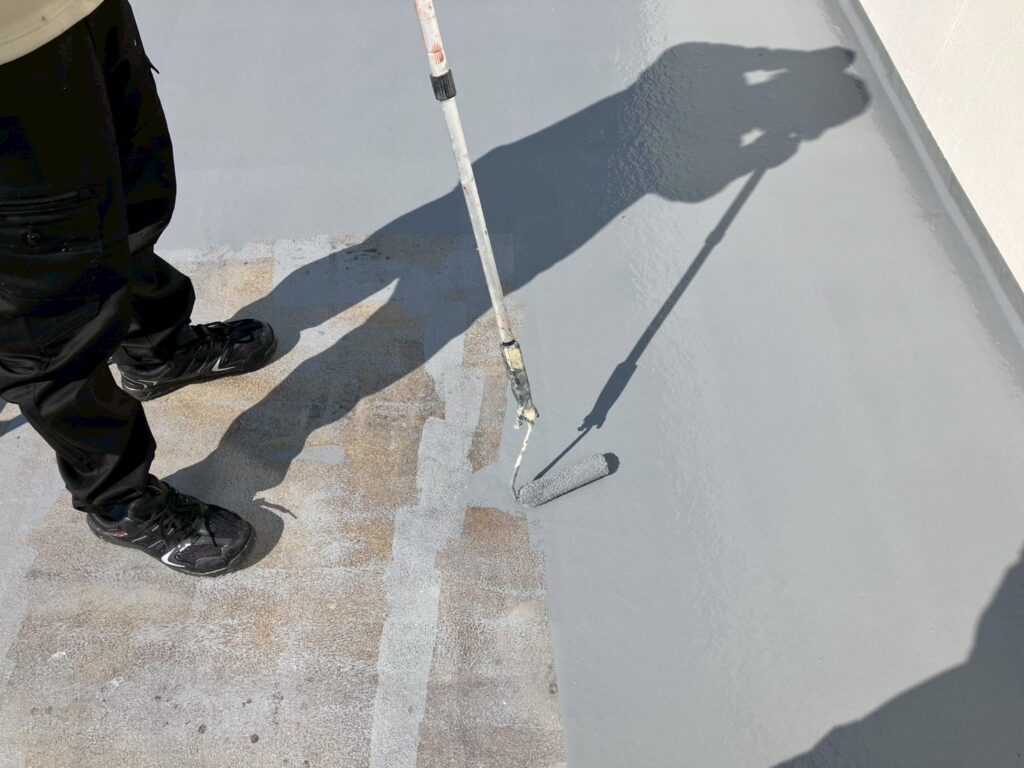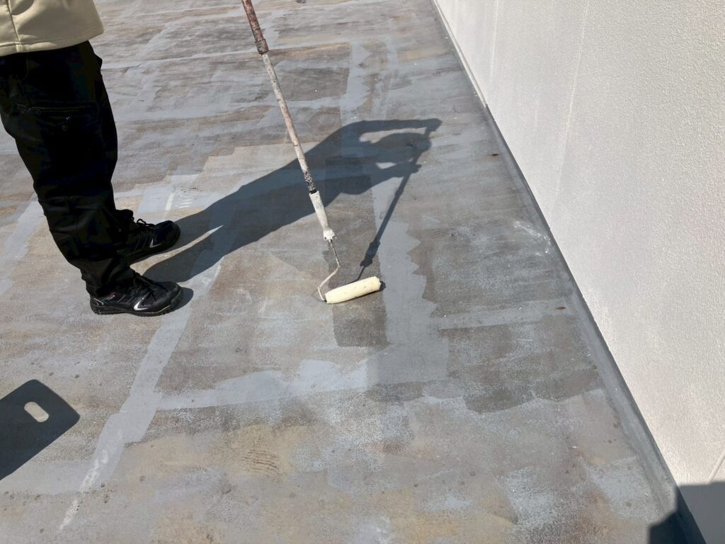 "防水材の密着性を確保するため、ウレアックスHG専用プライマーを施工しました。