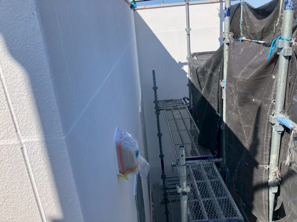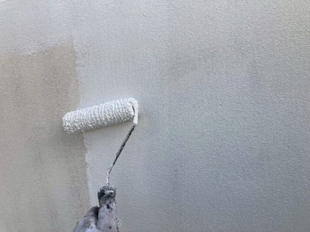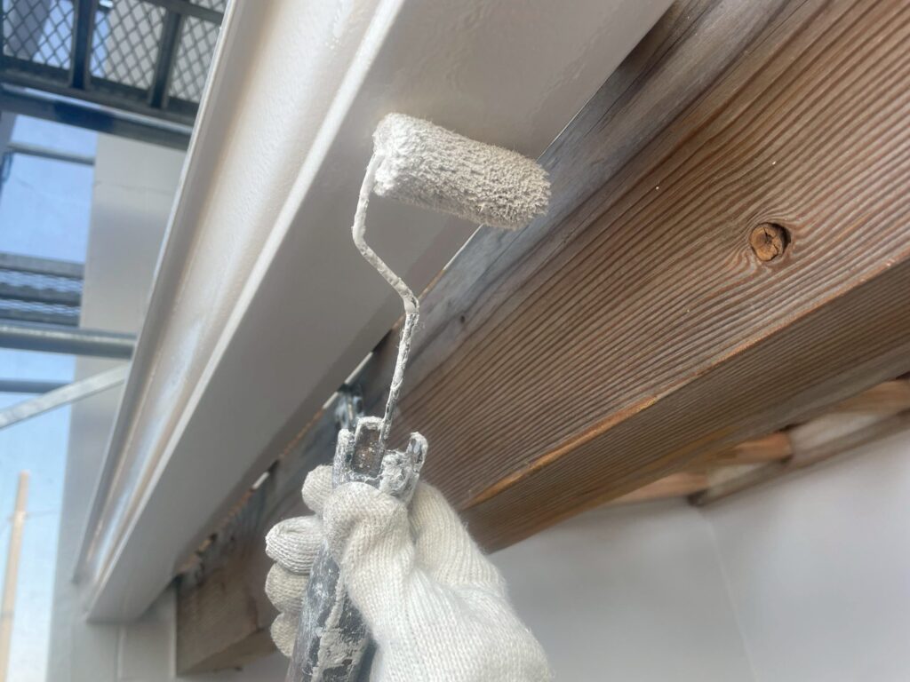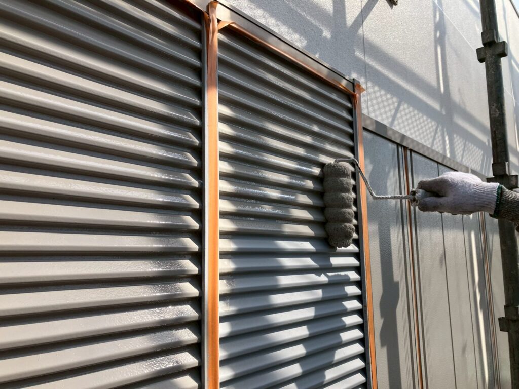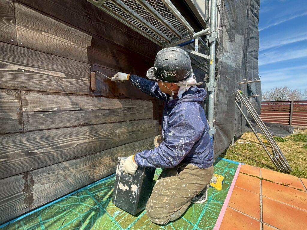 "中塗り後、規定の塗布量を守りながら上塗りを行い、塗膜の厚みと均一性を確保しました。これにより耐候性・防水性を最大限に引き出します。