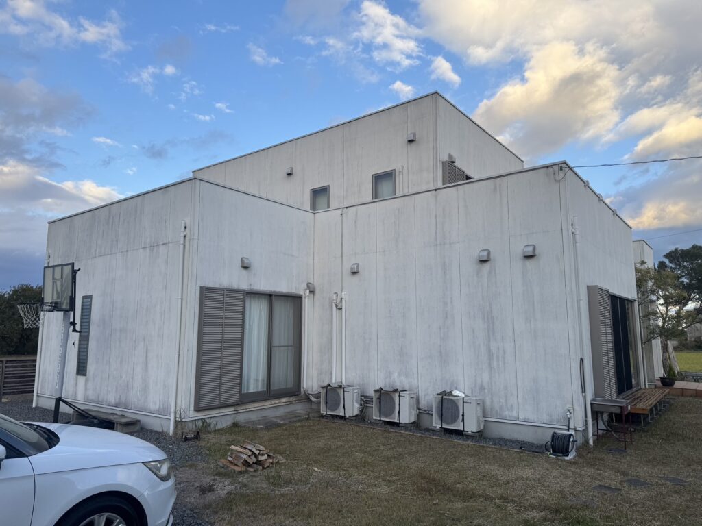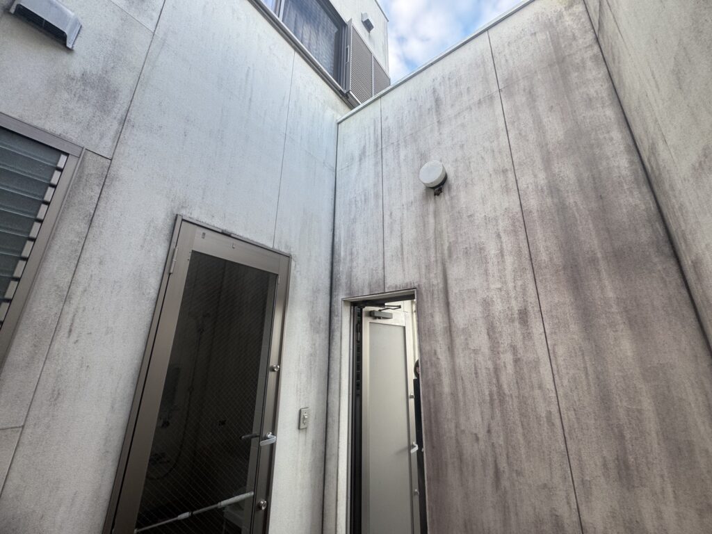 "外壁にはチョーキングの粉やコケ・藻・長年のホコリ汚れなどが付着しています。