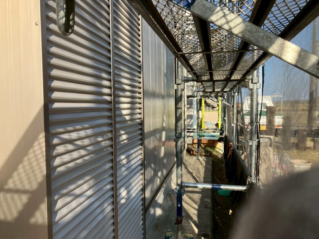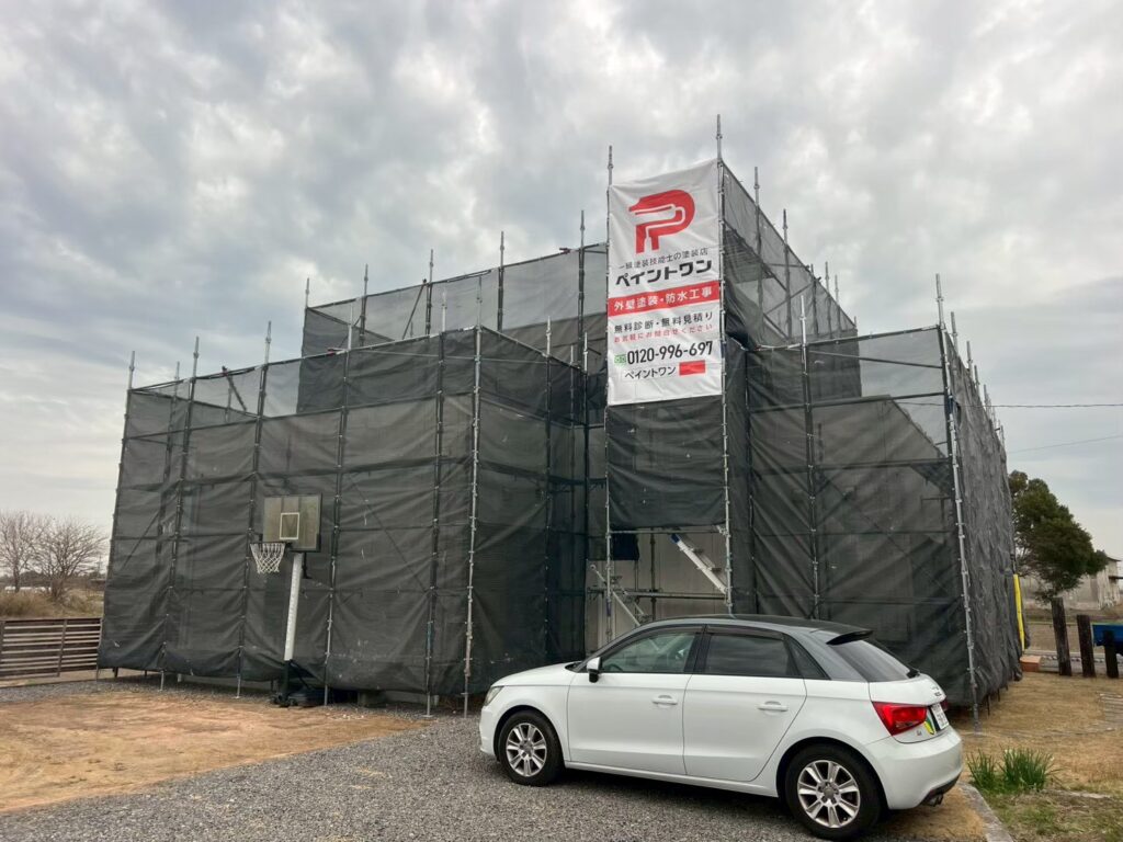 "安全で高品質な施工を行うため、建物全体に足場を設置しました。