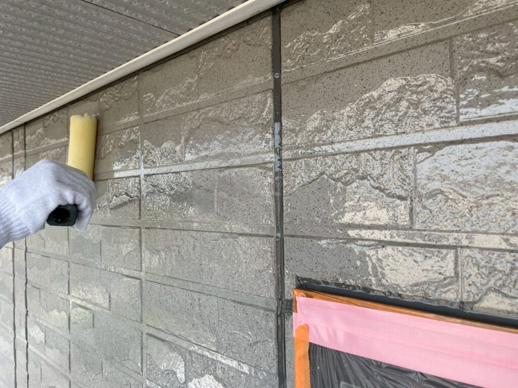 まずは上塗りとの密着性をあげるために透明の下塗り材を塗装します。