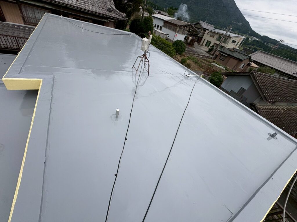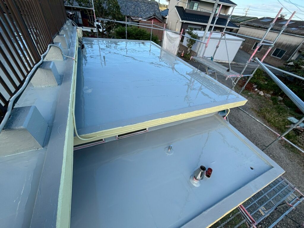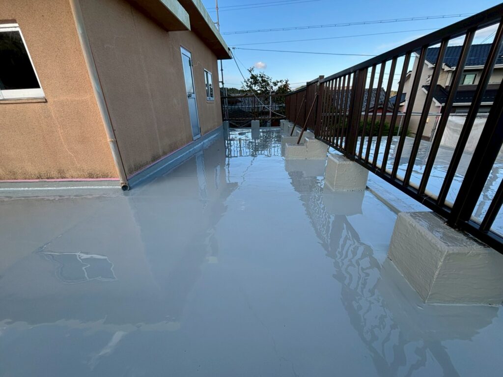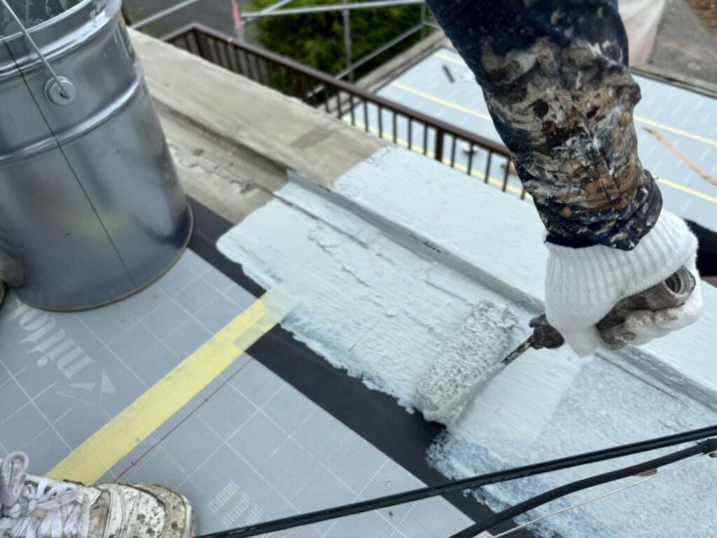 ウレタン防水材は紫外線に弱いため専用のトップコートを最後に塗布します。