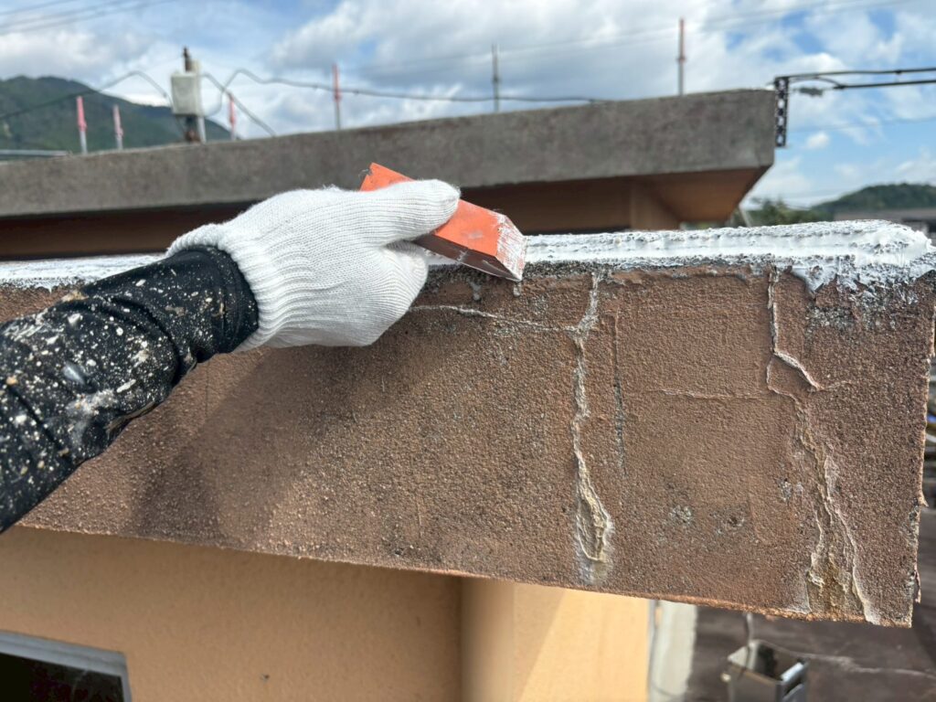 こちらは補修してから防水材を塗布していきます。