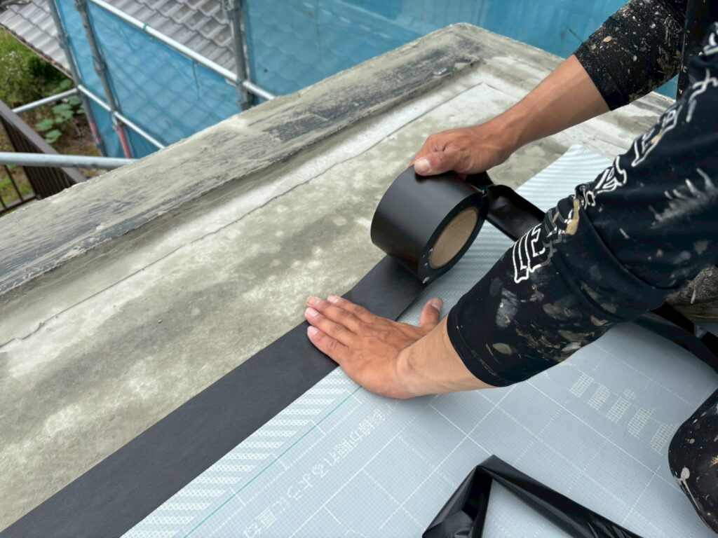 通気緩衝シートを貼っていきます。