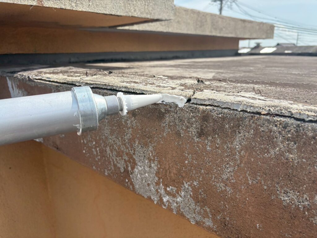 クラックはウレタンコーキングで補修していきます。